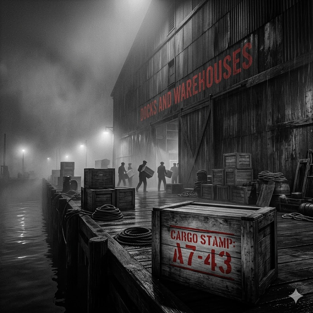 The waterfront is film noir’s frontier space — a place where the organized world dissolves into darkness, fog, and the constant sound of water against pilings. Docks and warehouses represent the city’s industrial unconscious, where goods of uncertain provenance change hands in the night, where men live outside of daylight society, and where violence can be committed and bodies disposed of with the complicity of the indifferent harbor. Fog is the waterfront’s natural element, concealing and revealing as it chooses, a perfect metaphor for the obfuscated truths of the noir universe.